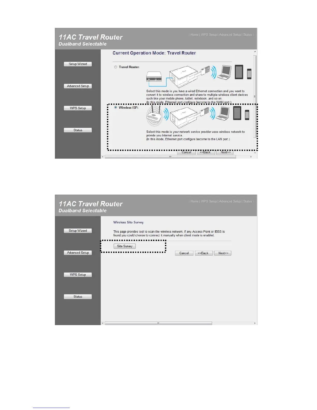 Wireless Site Survey: Please click “Site Survey” button to find WiFi AP in
