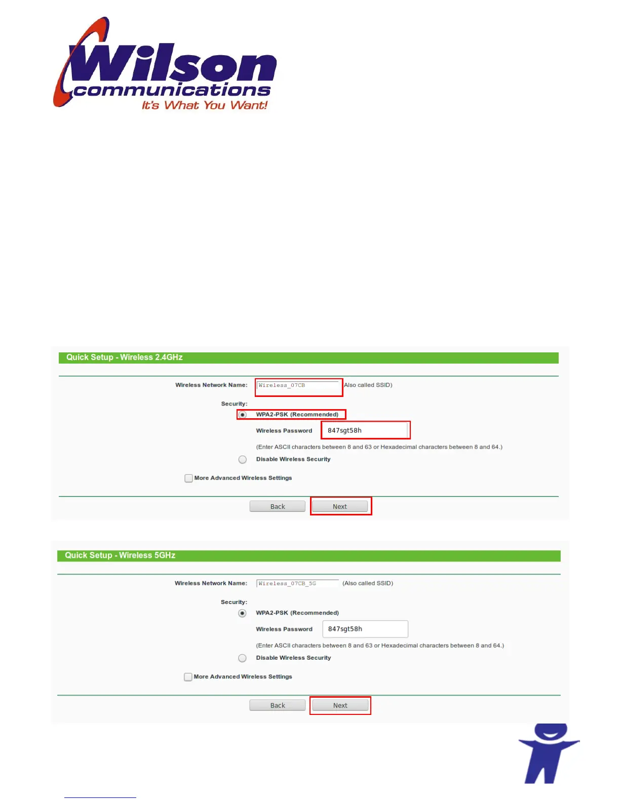Document your Wireless Network Name (SSID) and Wireless password on the last page.