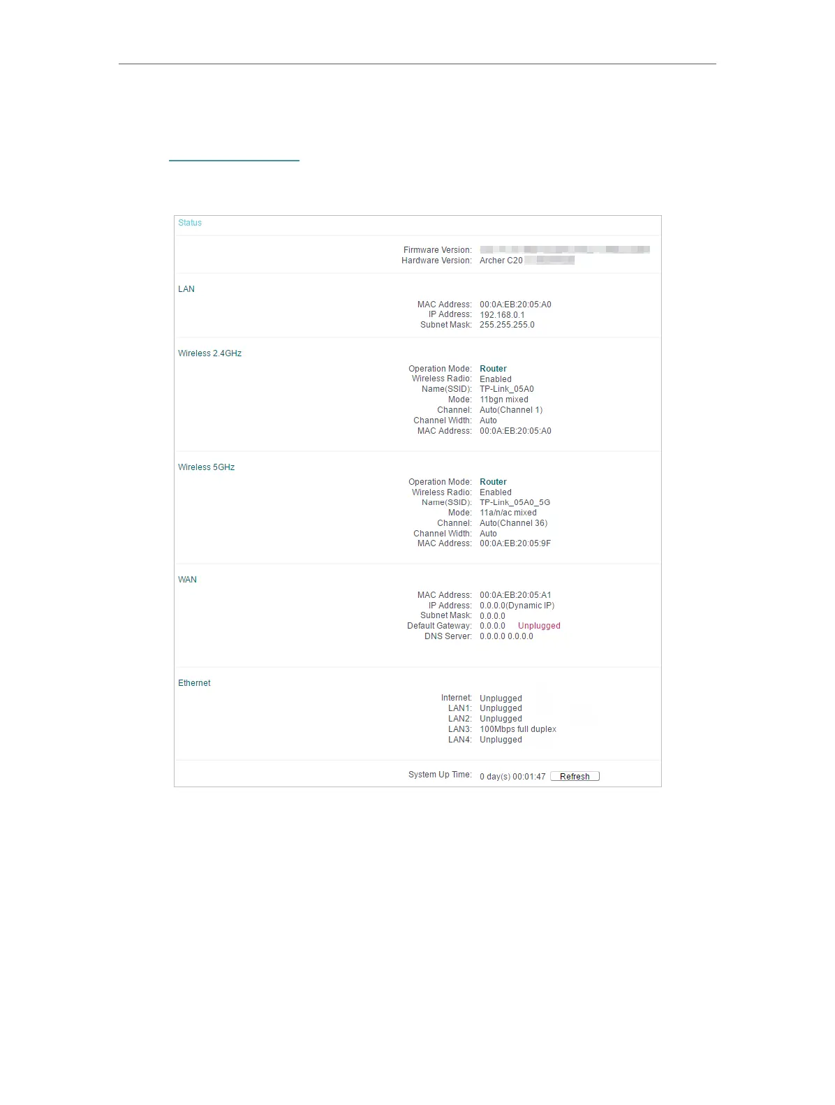 • LAN - This field displays the current settings of the LAN, and you can configure them