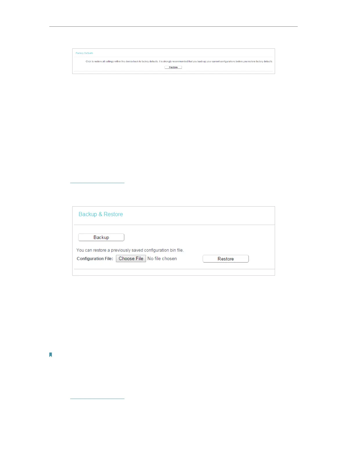• To restore configuration settings: