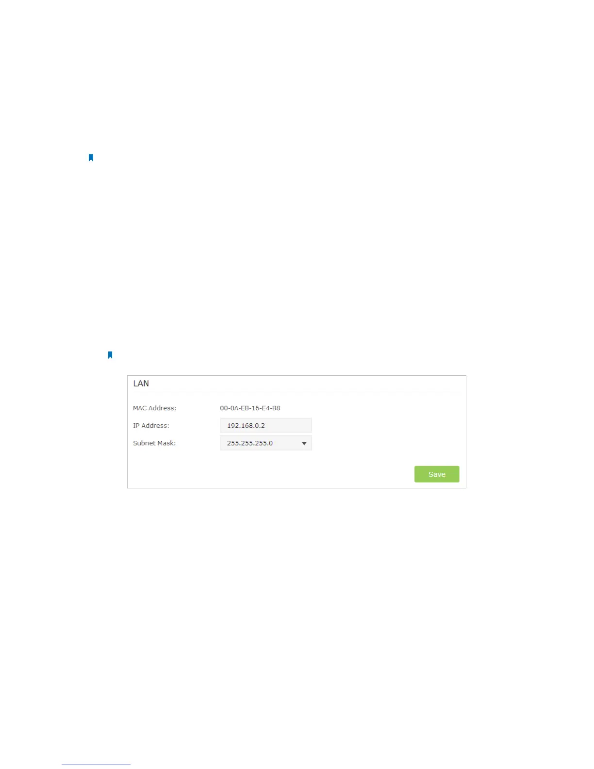 1 ) Go to Advanced > Network > LAN, configure the IP address of the extended