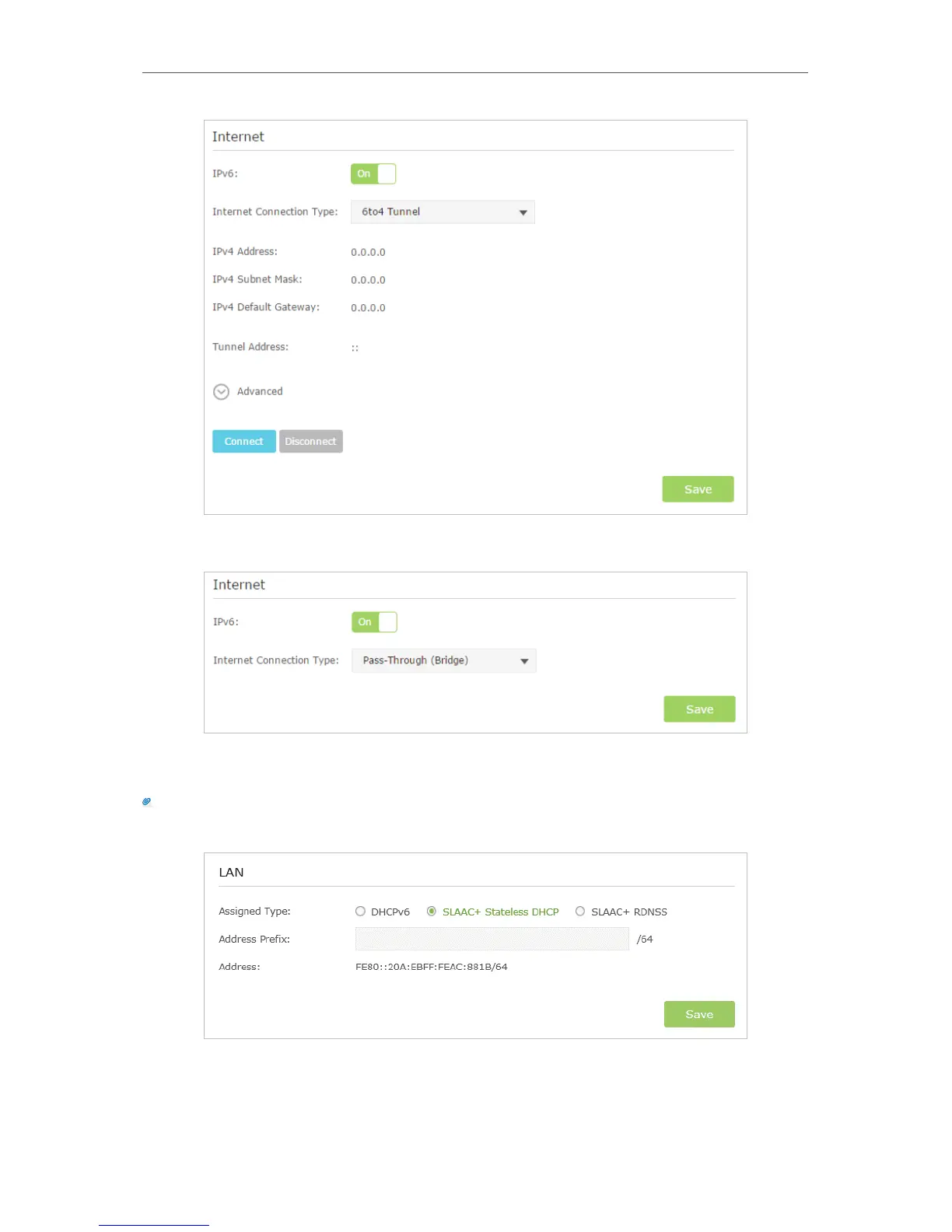 types. Fill in Address Prefix provided by ISP, and click Save to save the settings.