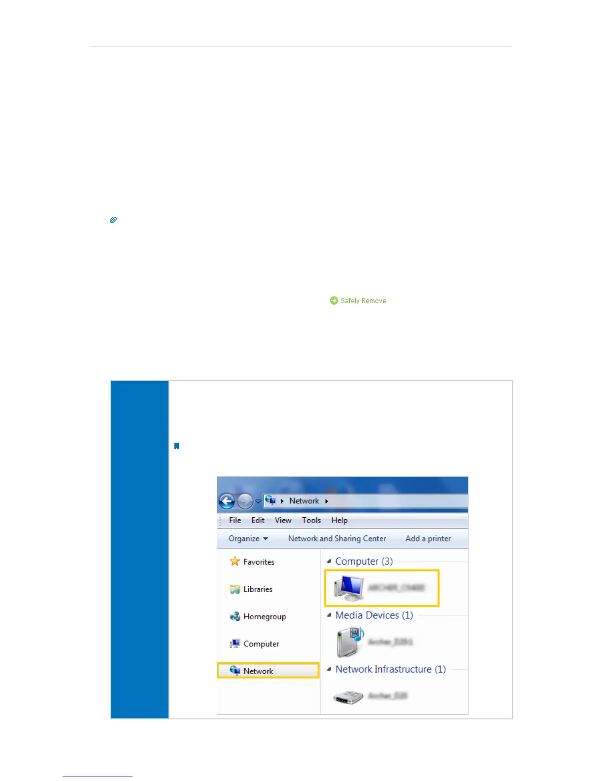 • Before you physically disconnect a USB device from the router, safely remove it to avoid data damage: Go