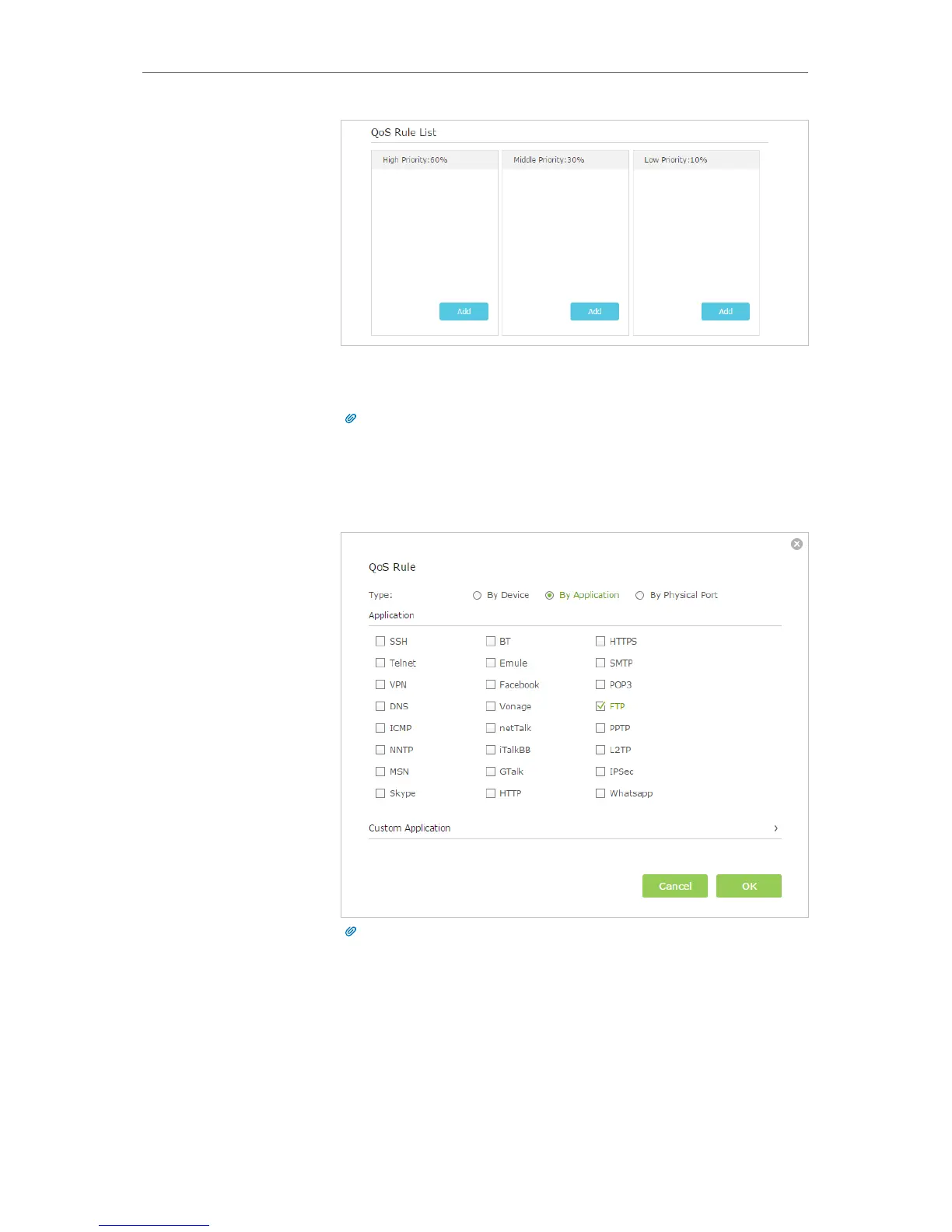 In the QoS rule field, displays three rule type include By Device, By Application