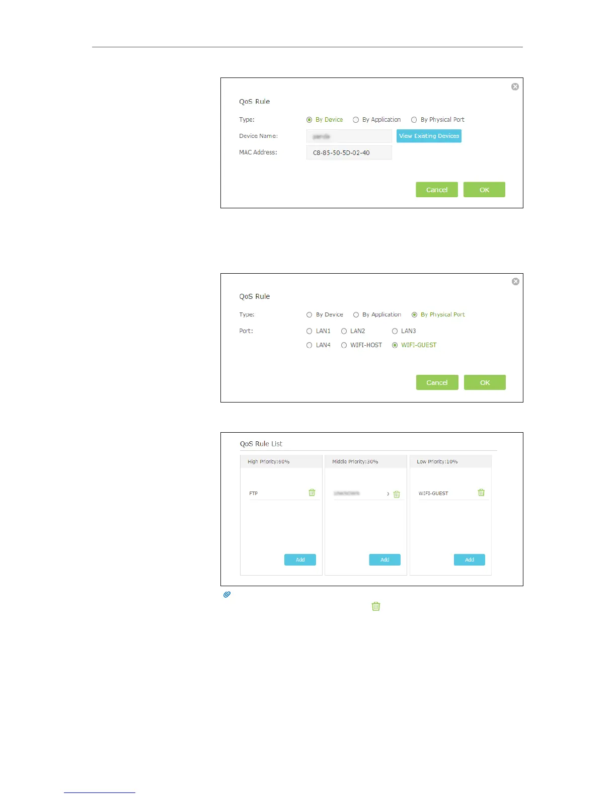 If you want to delete a QoS rule, click to remove the responding rule from