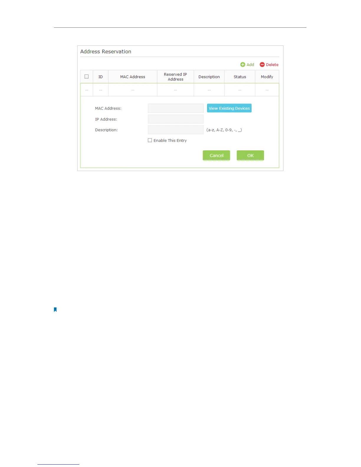 2. Click View Exsiting Devices or enter the MAC address of the client device.