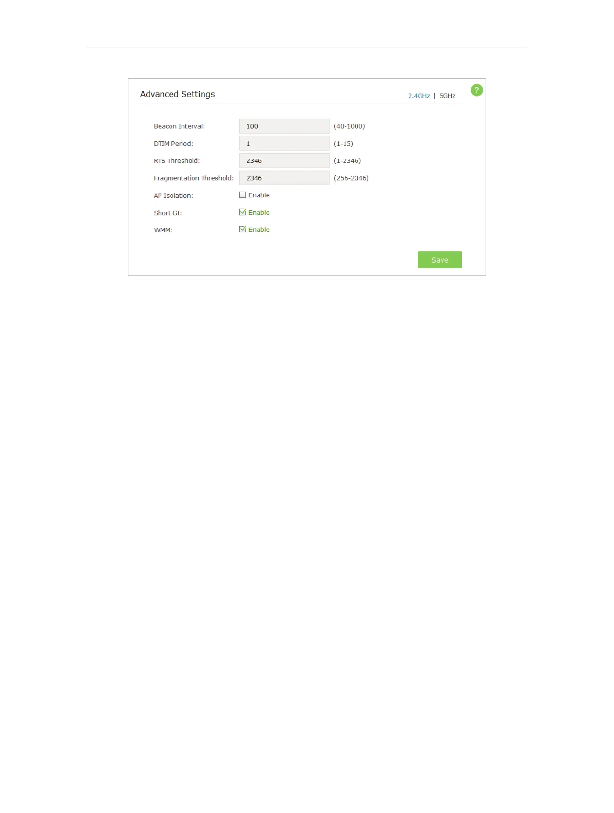 • Fragmentation Threshold - Specify the maximum packet size (in bytes)
