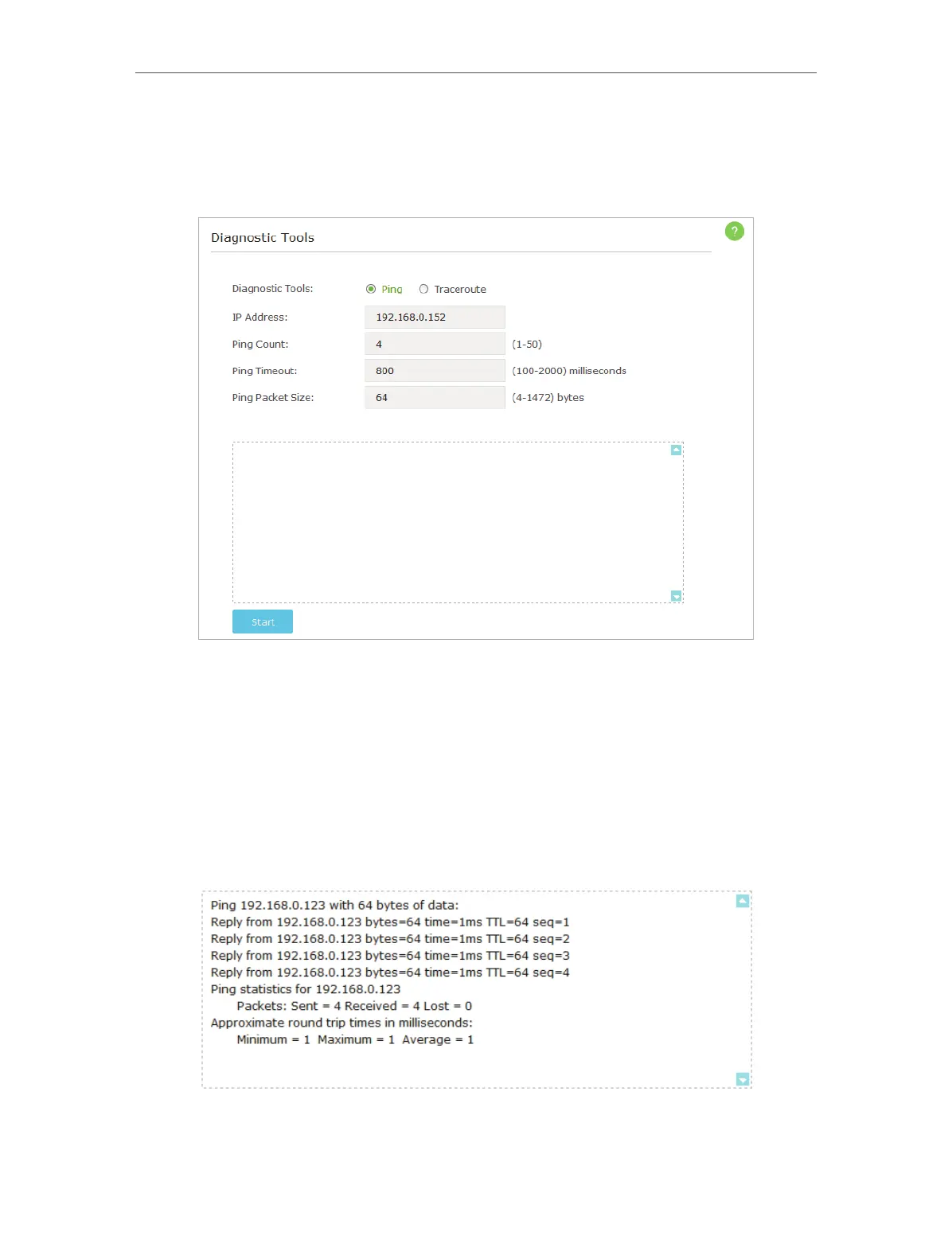 3 ) Specify the Ping Count, Ping Timeout and Ping Packet Size. (Optional)