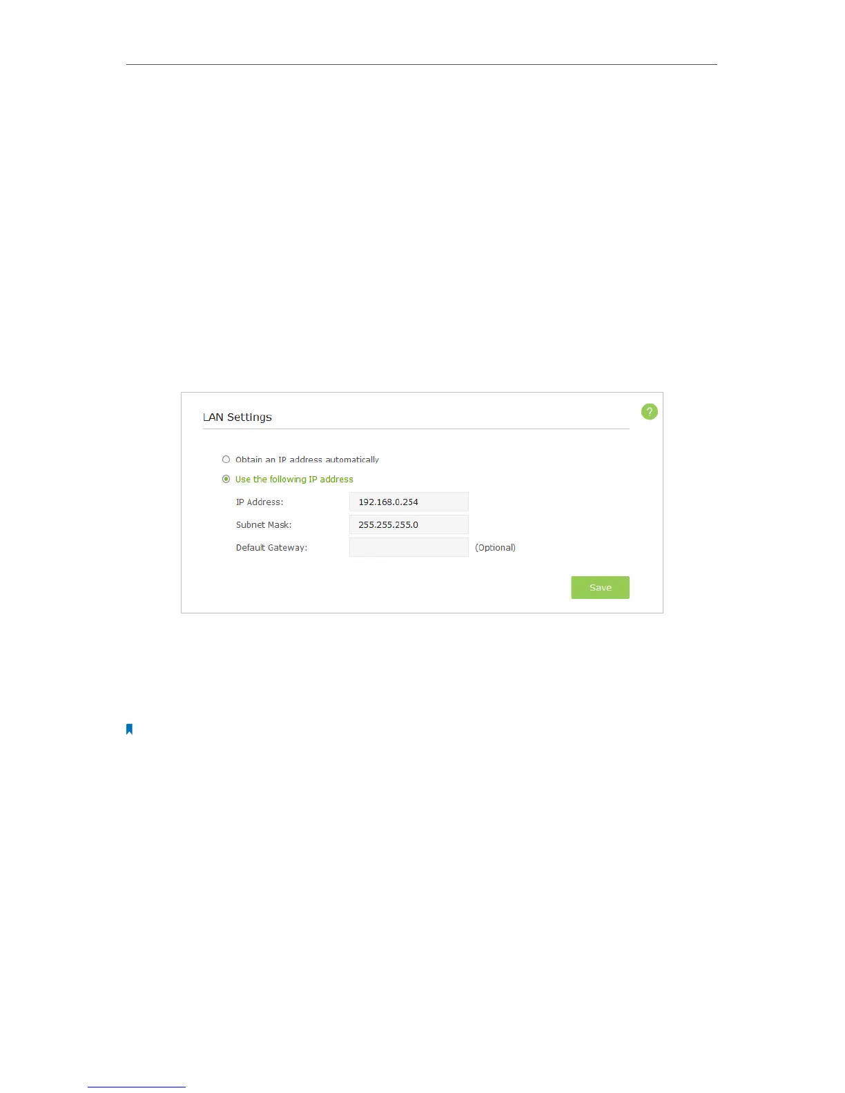 page. It is recommended to keep the default LAN settings to avoid IP conflict with the