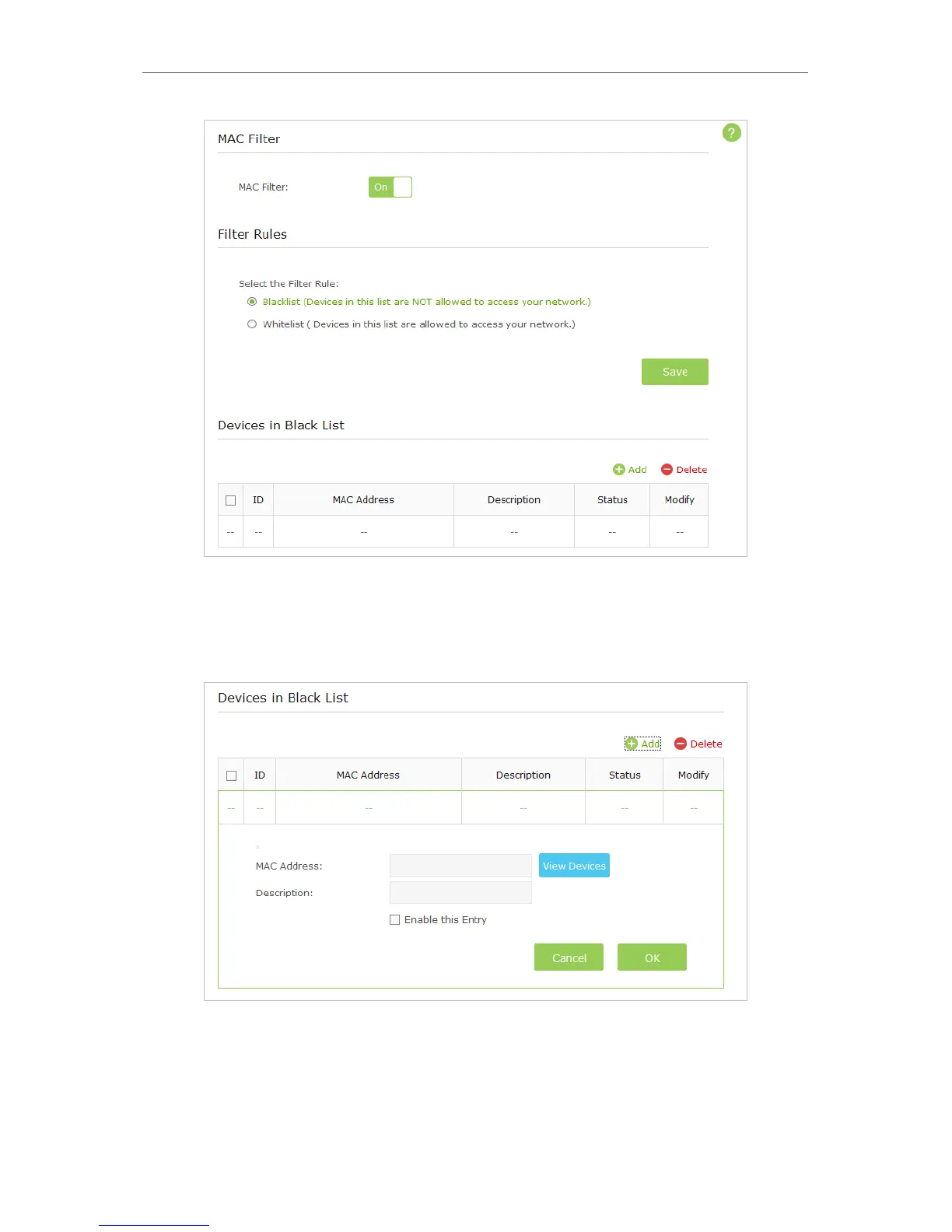 2 ) Enter the MAC address of the device or click View Devices button to choose the