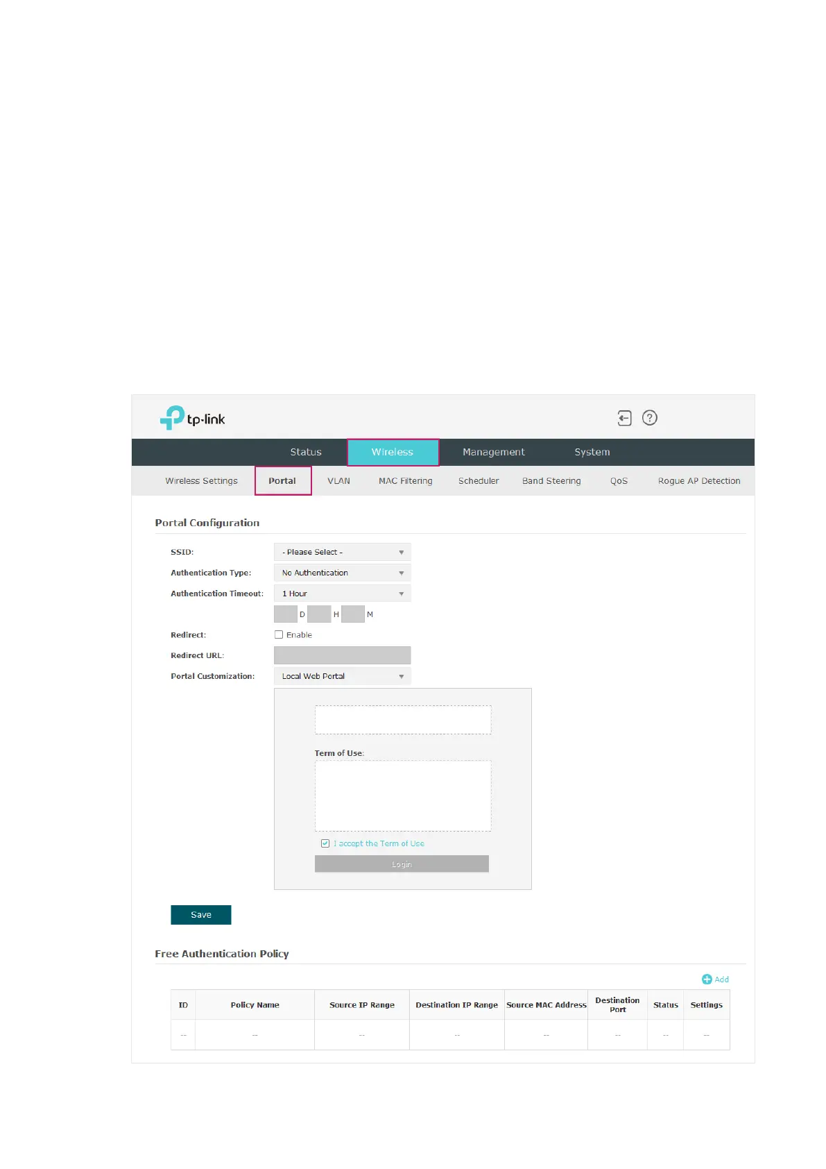In this module, you can also configure Free Authentication Policy, which allows the specific