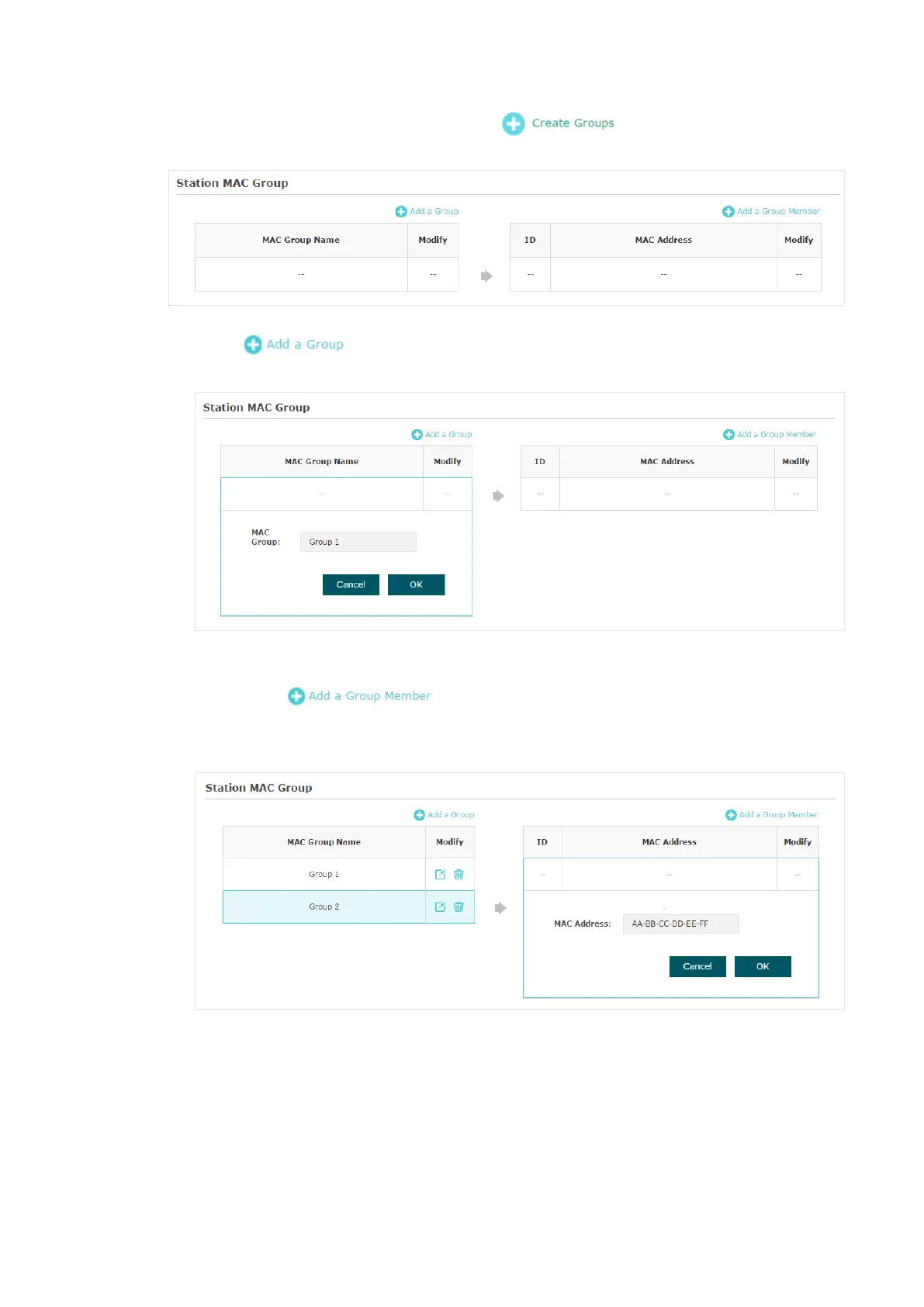 2. In the Station MAC Group section, click and the following page will