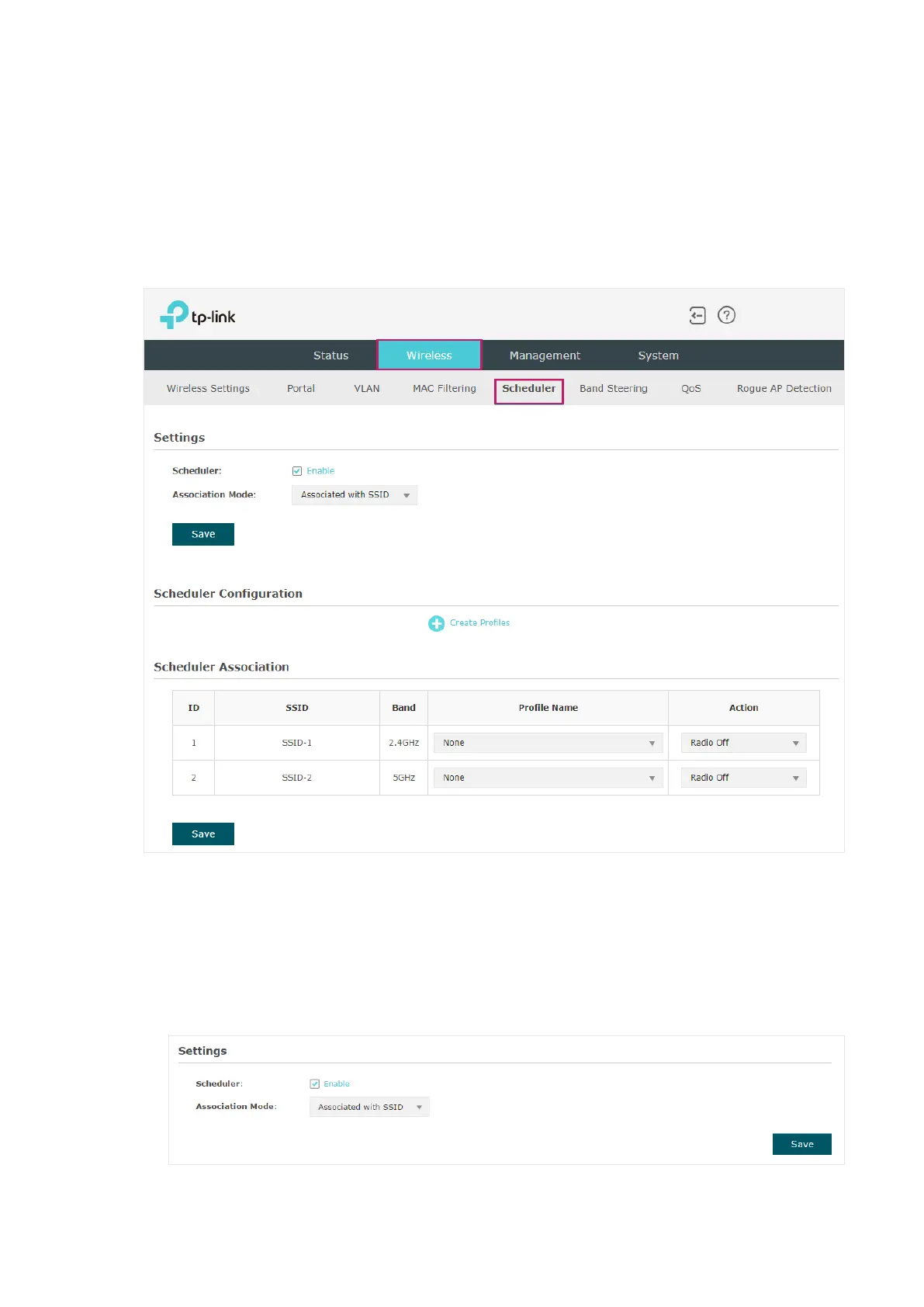 To configure Scheduler, go to the Wireless > Scheduler page.