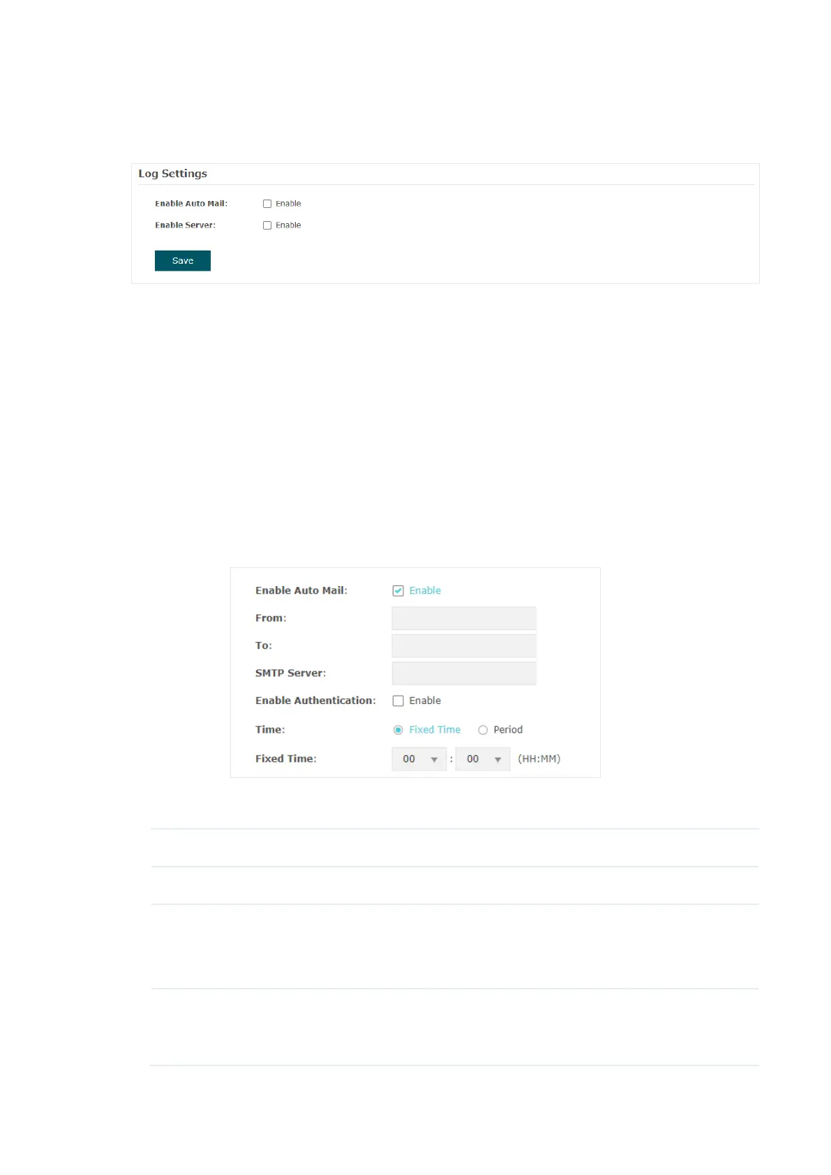 If Auto Mail is configured, system logs will be sent to a specified mailbox. Check the box