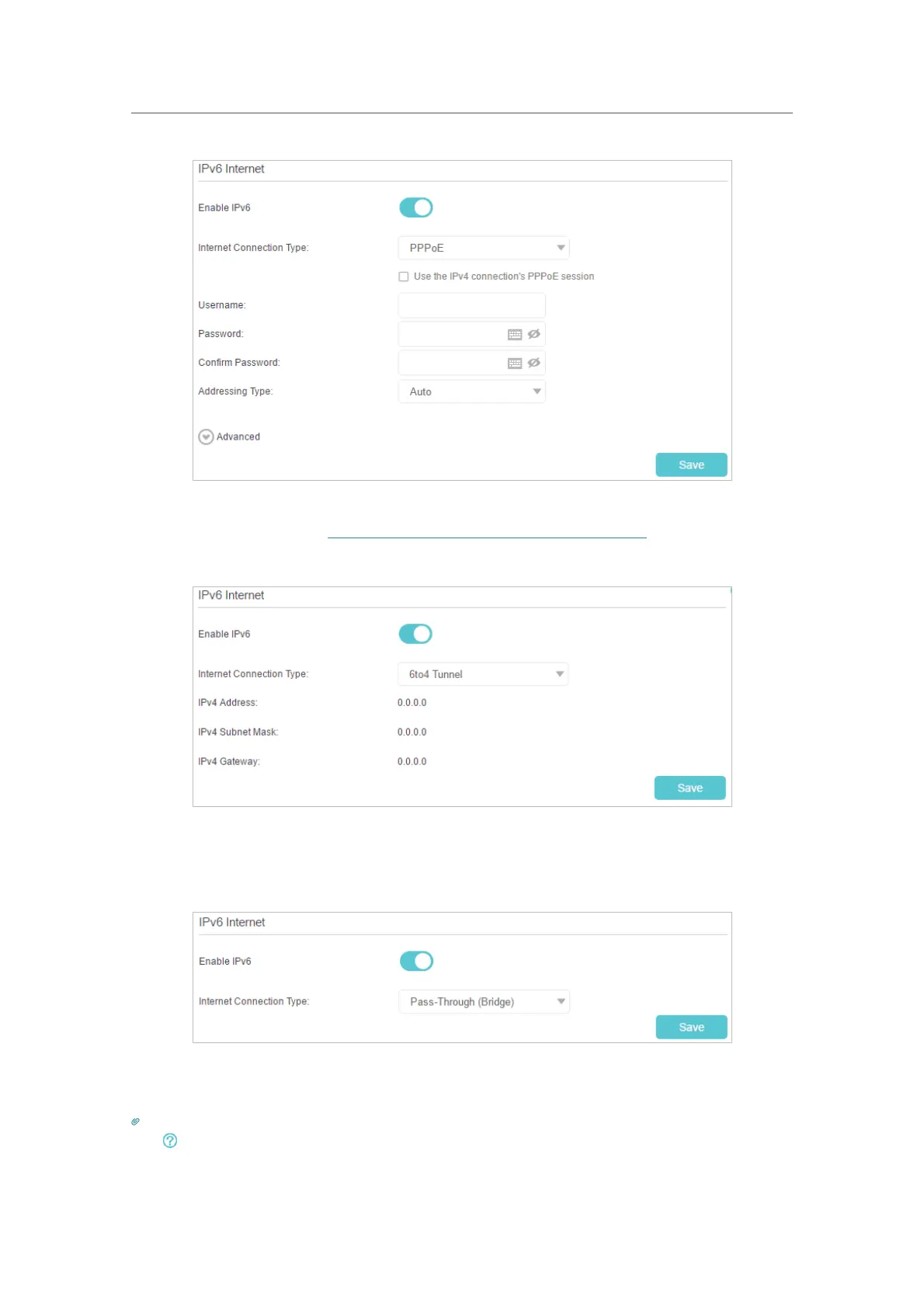 5 ) Pass-Through (Bridge): Select this type if your ISP uses Pass-Through (Bridge)