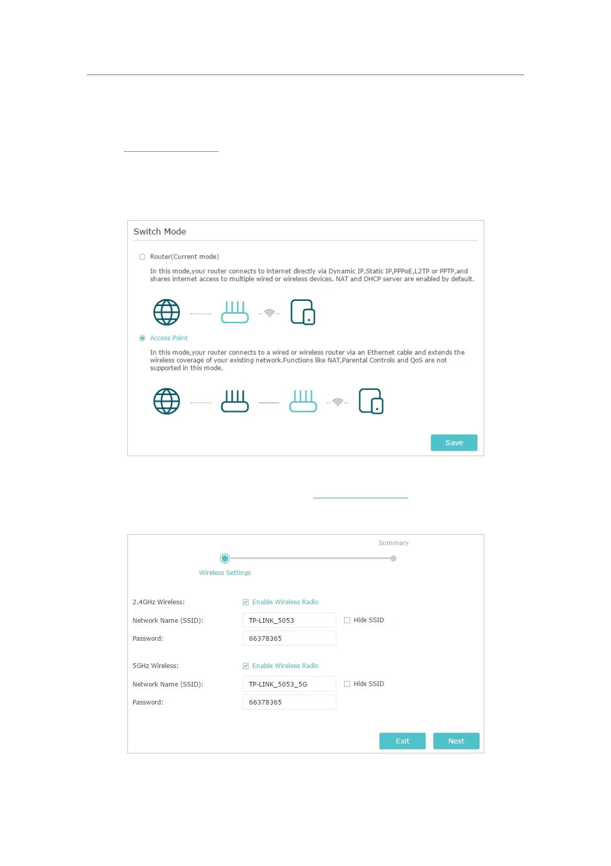 Advanced > Operation Mode, select Access Point and click Save. The router