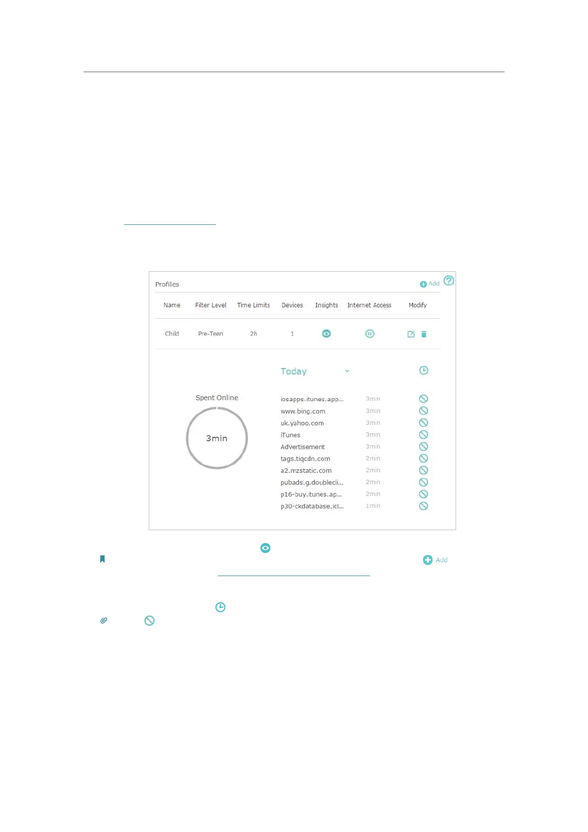 Note: If you have not set up a profile for your child yet, you should do that first by clicking , then follow the