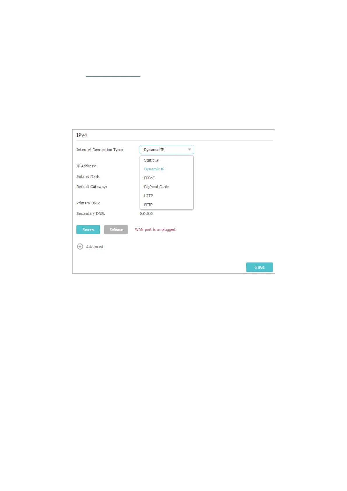 1 ) Confirm your internet connection type, which can be learned from the ISP.
