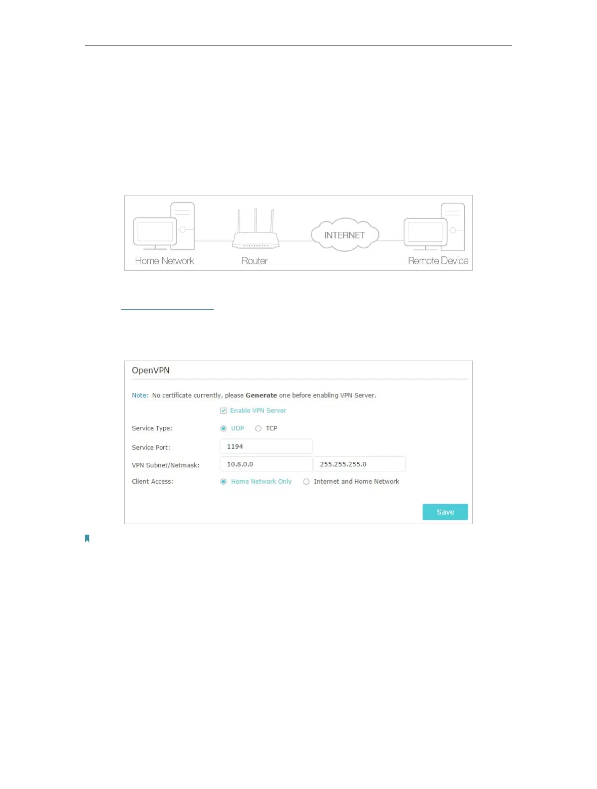 • The first time you configure the OpenVPN Server, you may need to Generate a certificate before you enable the VPN