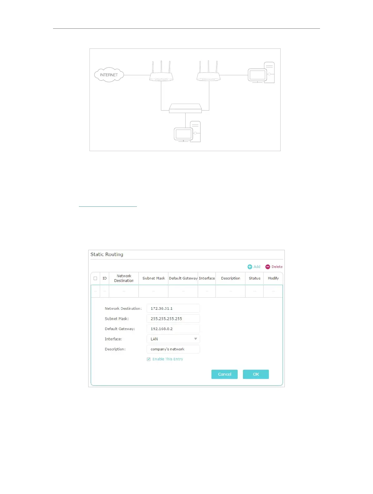 route. This IP address cannot be on the same subnet with the WAN IP or LAN IP of