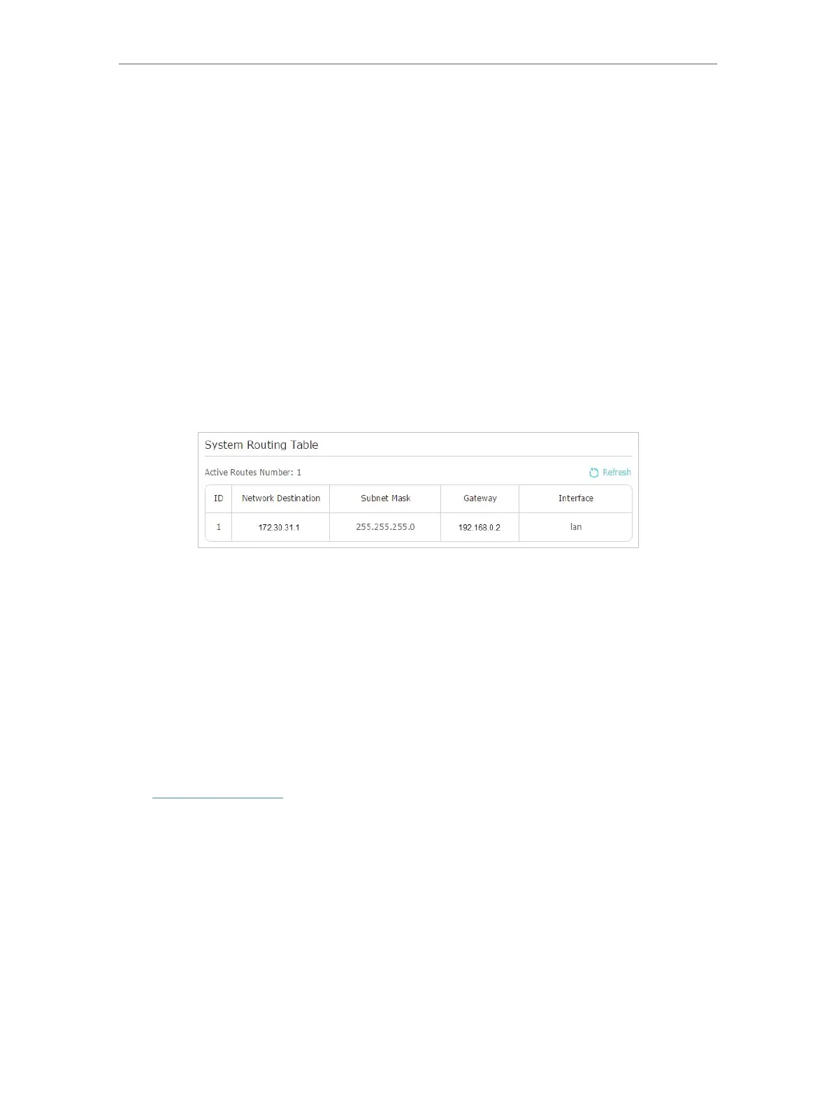 6. Check the System Routing Table below. If you can find the entry you’ve set, the