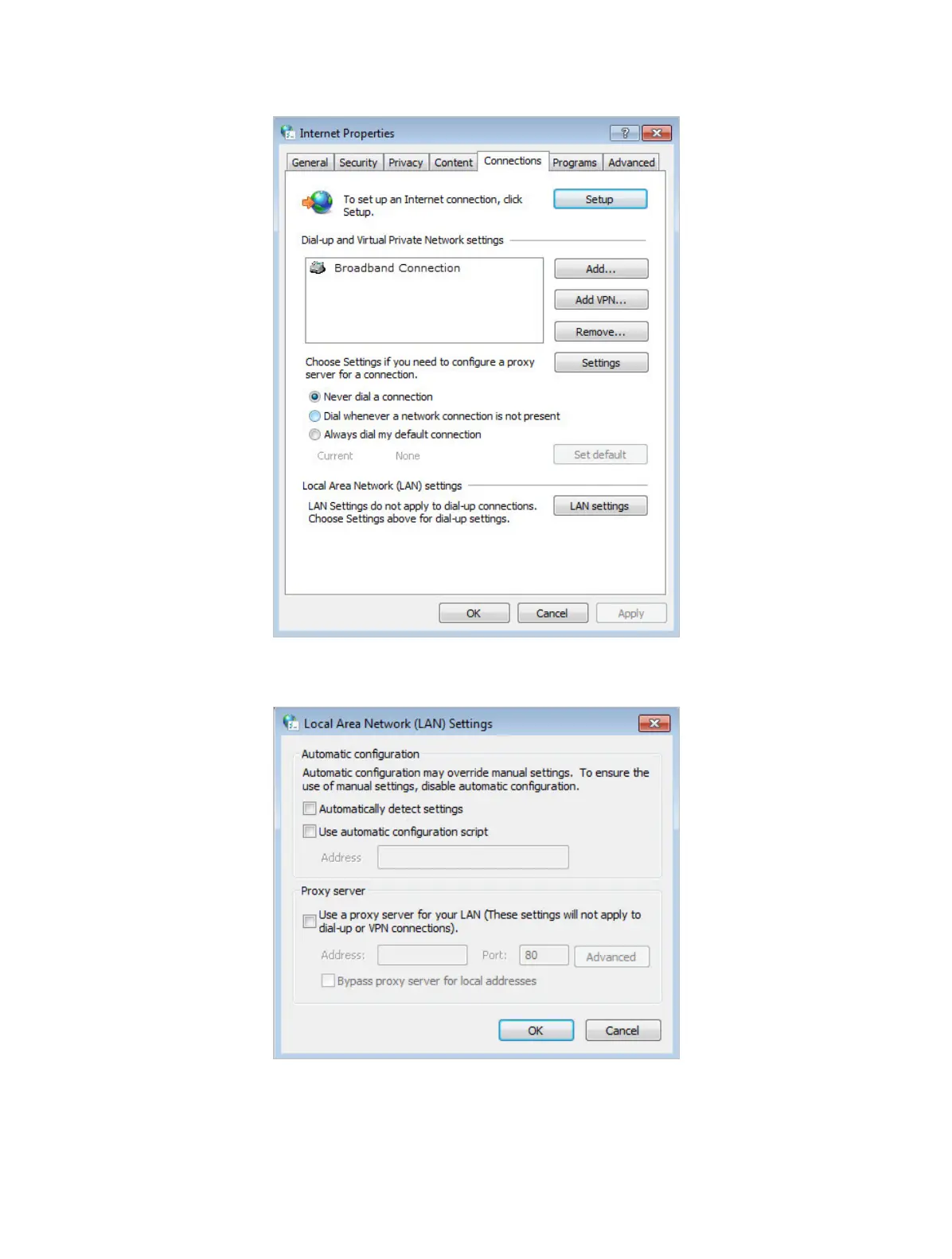 3 ) Click LAN settings and deselect the following three options, and click OK.