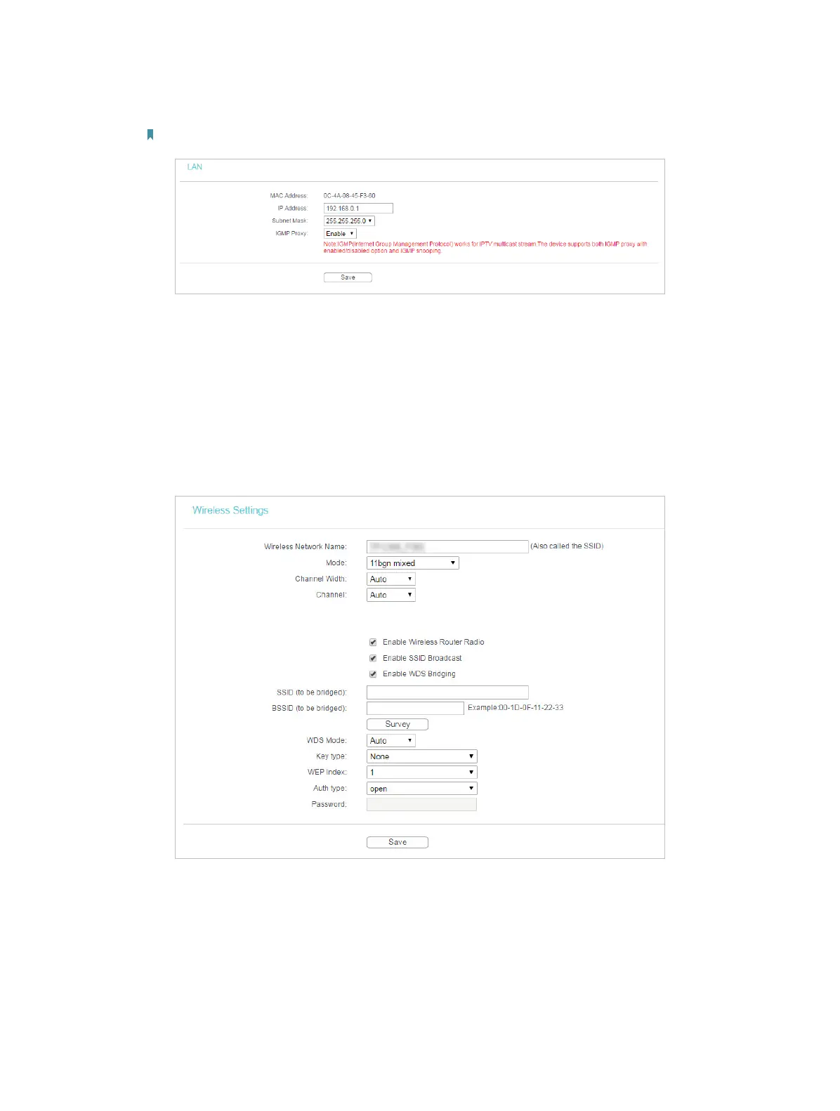 Note: Log in to the web management page again if the IP address of the router is altered.