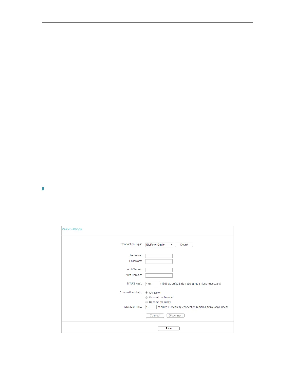 • Connect on Demand - In this mode, the internet connection can be terminated
