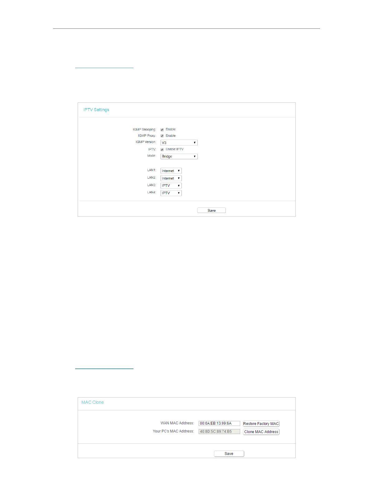 3. Configure the WAN MAC address and click Save.