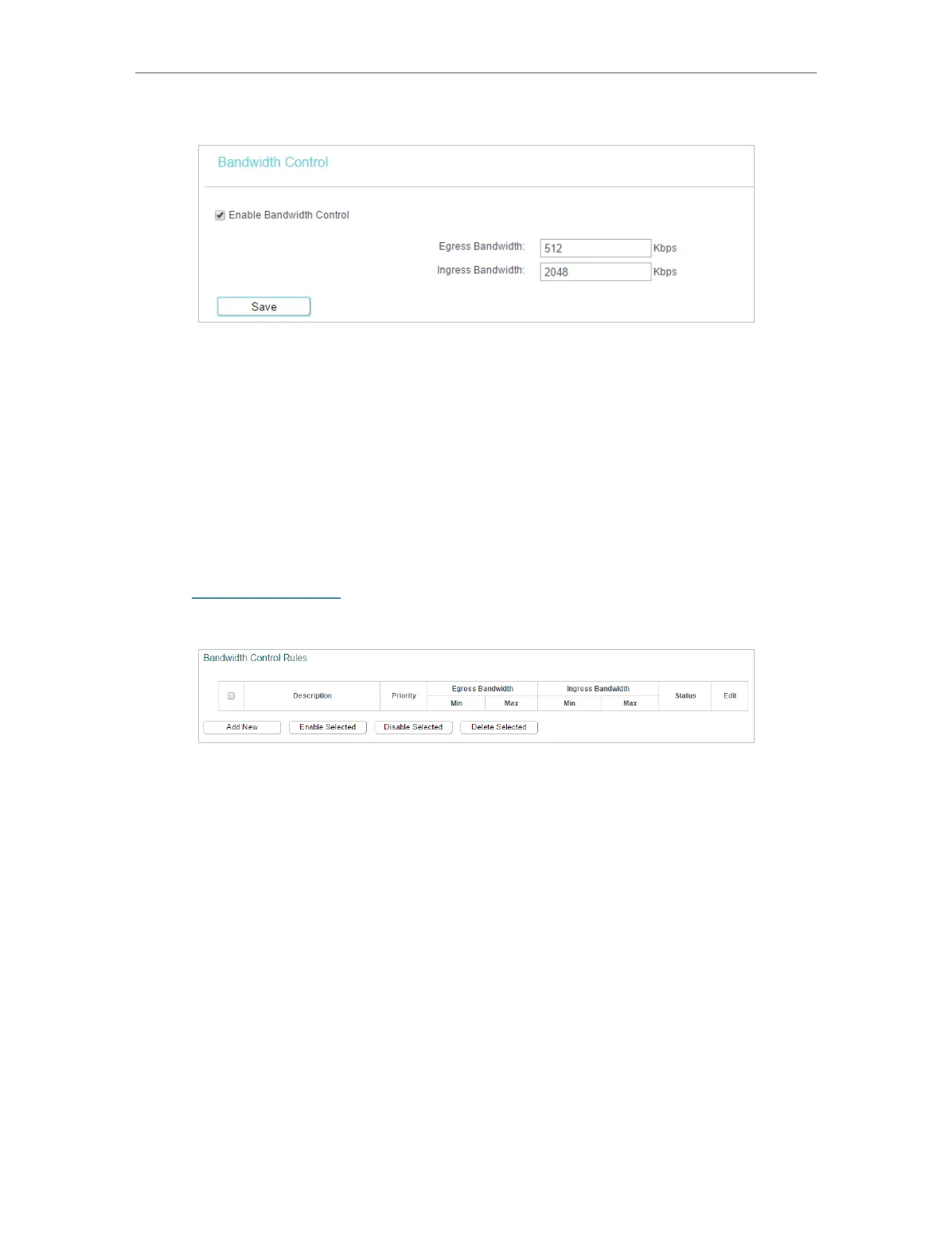 • Enable Bandwidth Control - Check this box so that the Bandwidth Control settings