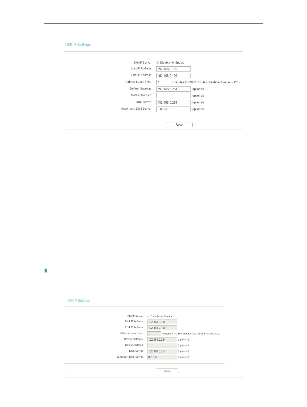 • DHCP Server - Enable or disable the DHCP server. If disabled, you must have another