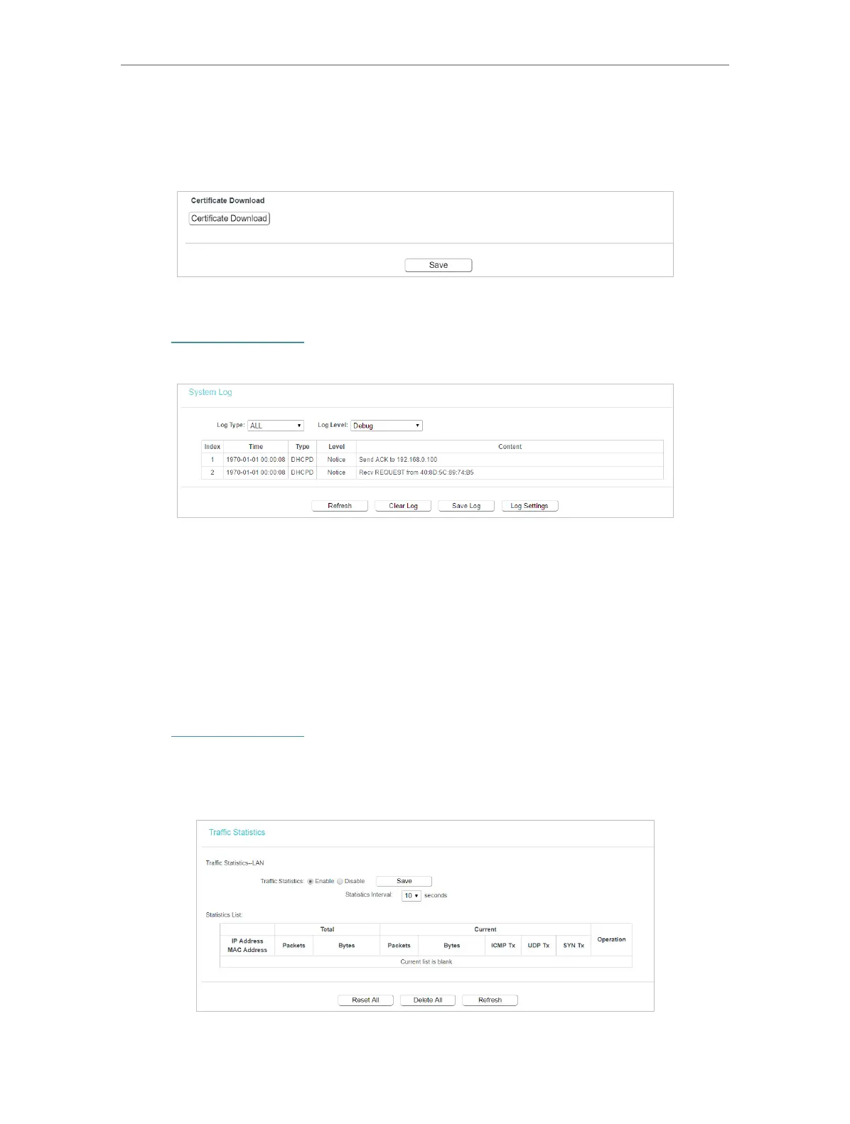 • Clear Log - All the logs will be deleted from the router permanently, not just from the