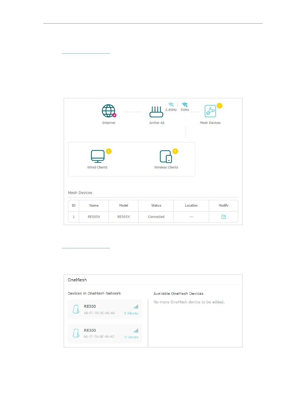 3. Click the Mesh Devices, Wired Clients, or Wireless Clients icon to view the related