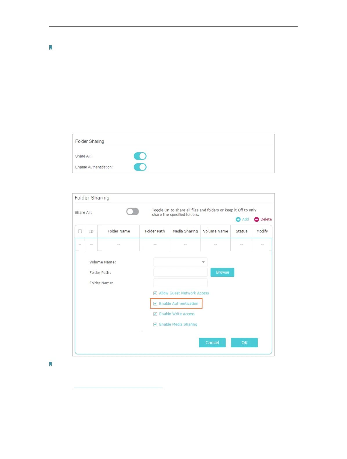 • If you leave Share All enabled, click the button to enable Authentication for all