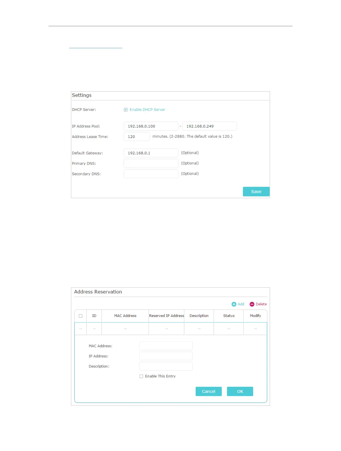 1. Click Add in the Address Reservation section.