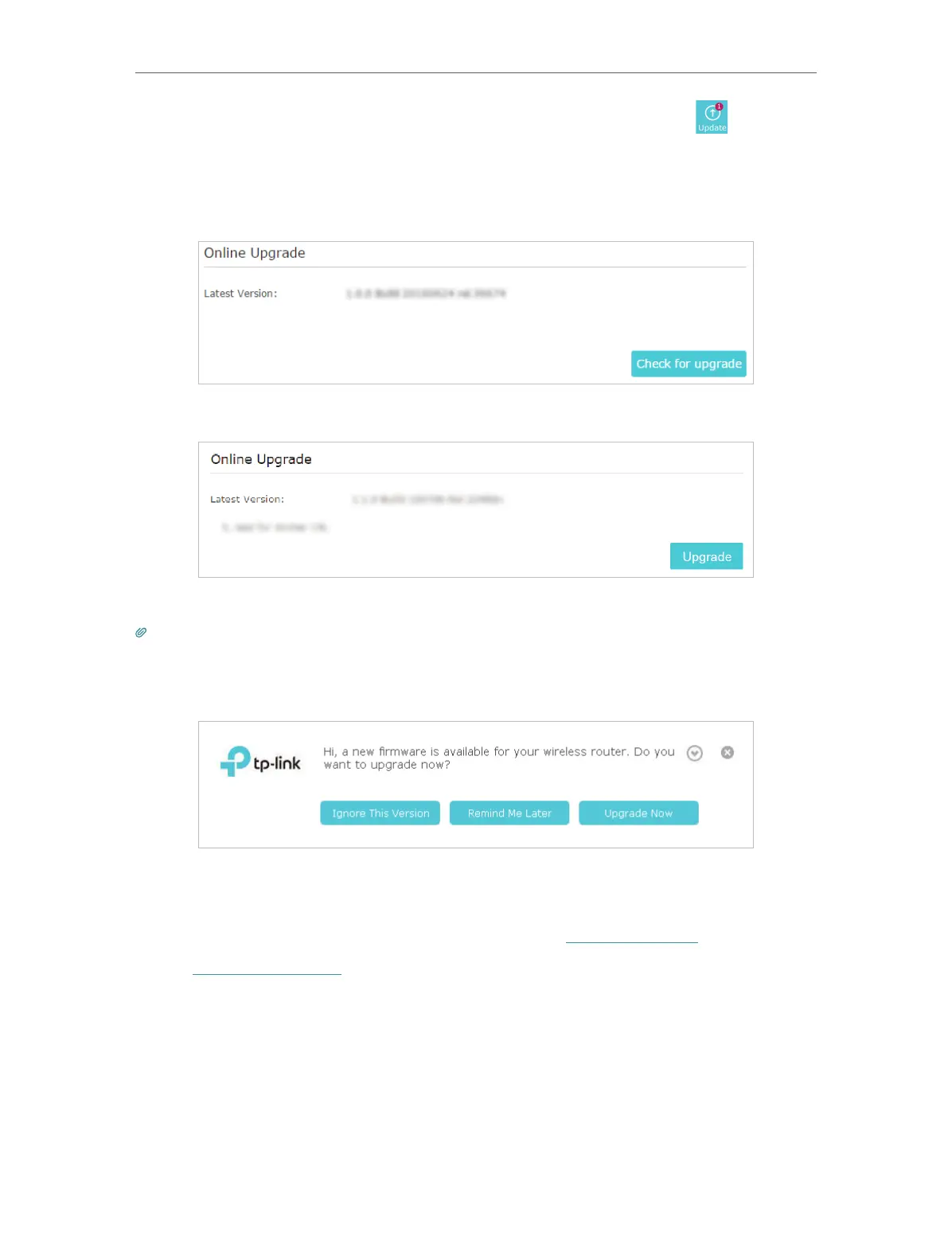2. When the latest firmware is available for your router, the update icon will display