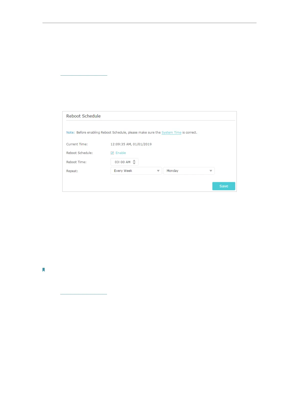 4. Specify the Reboot Time when the router reboots and Repeat to decide how often it