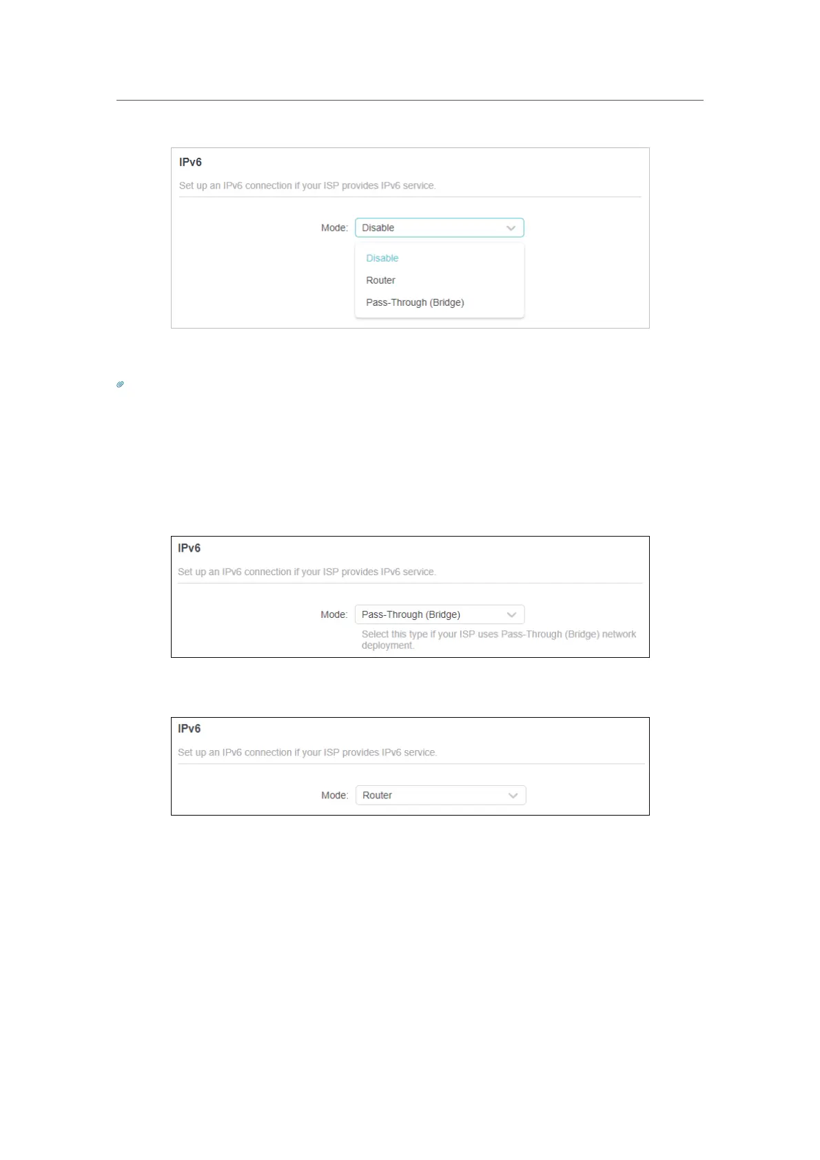 3. Select the mode provided by your ISP to enable IPv6 connection.