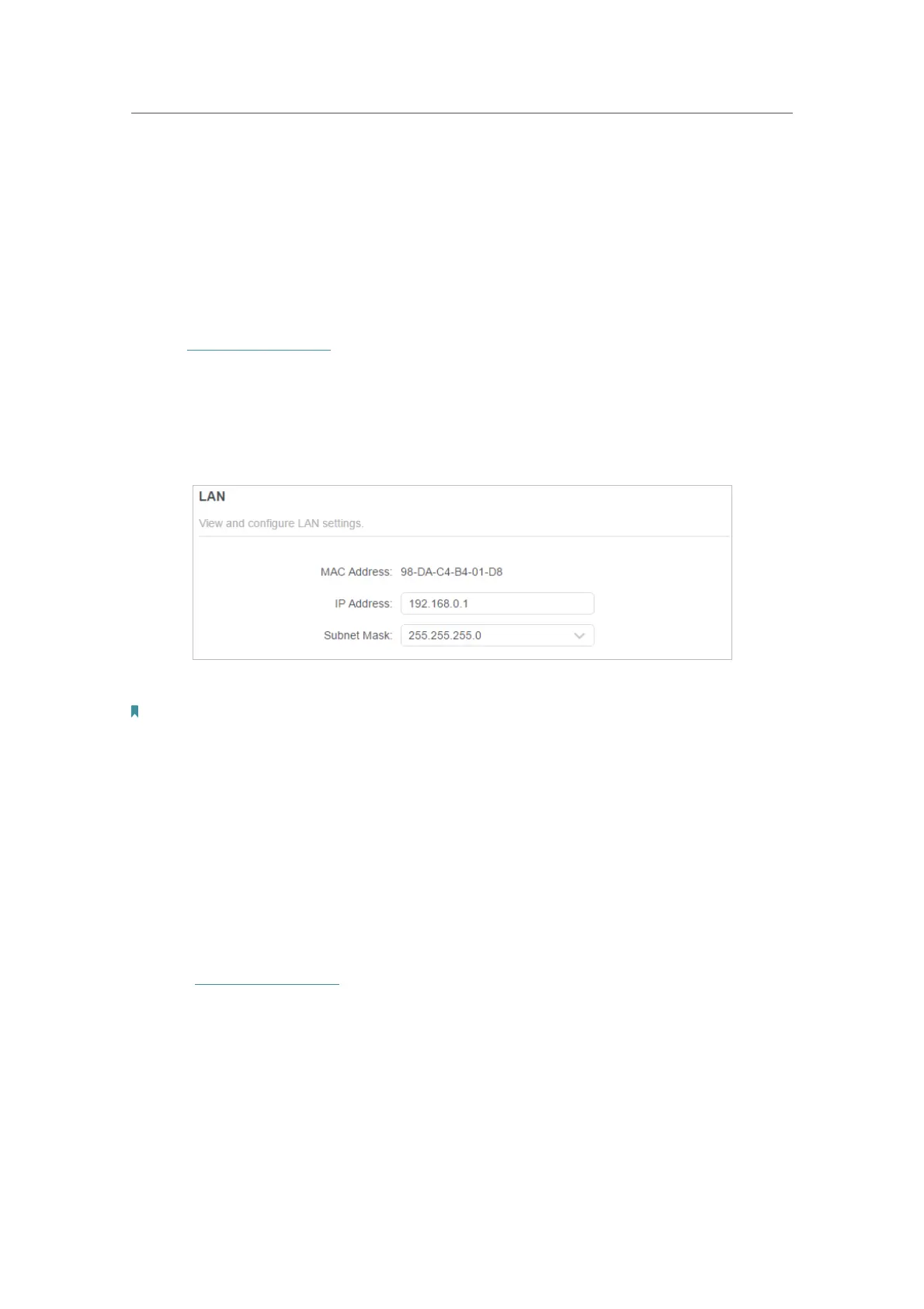 Note: If you have set the Port Forwarding, DMZ or DHCP address reservation, and the new LAN IP address is not in the