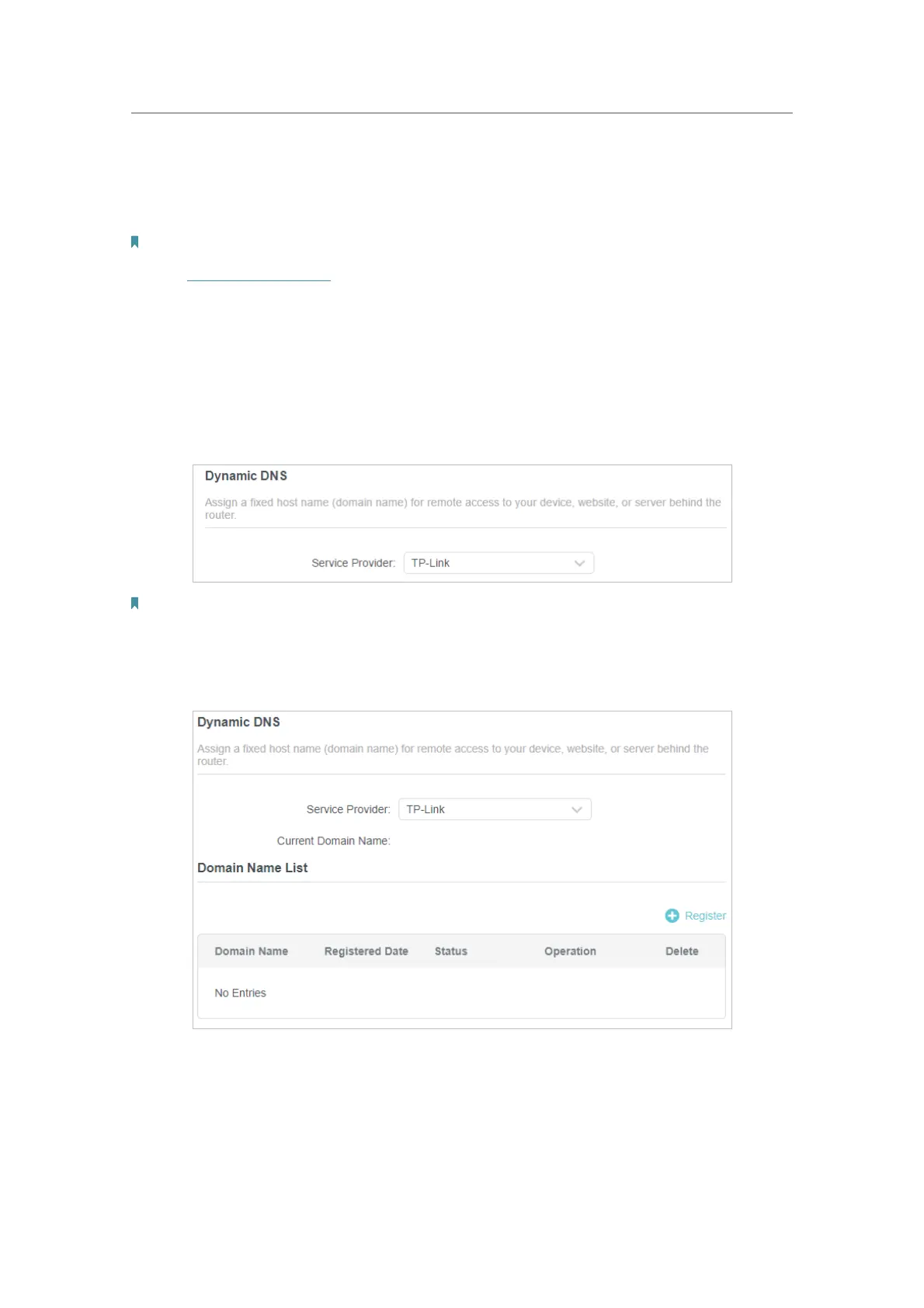 4. Click Register in the Domain Name List if you have selected TP-Link, and enter the
