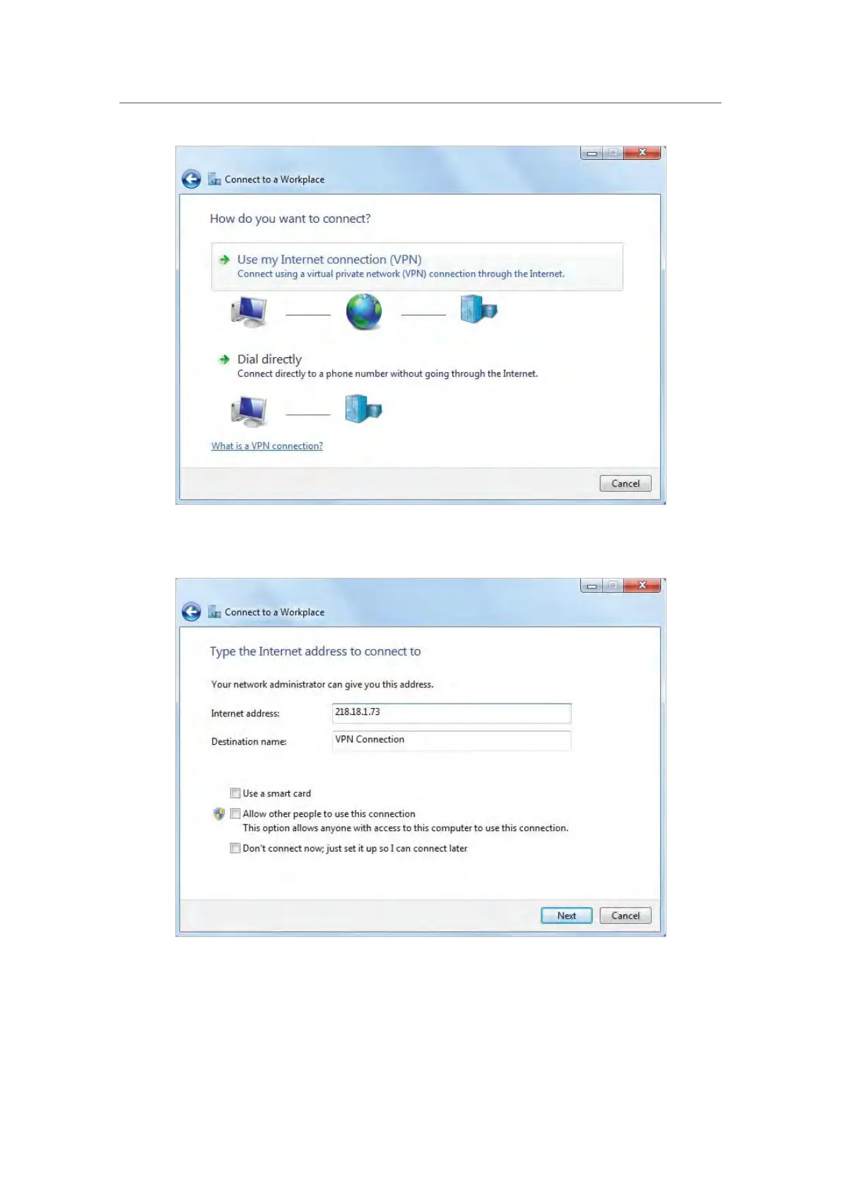 5. Enter the internet IP address of the router (for example: 218.18.1.73) in the Internet