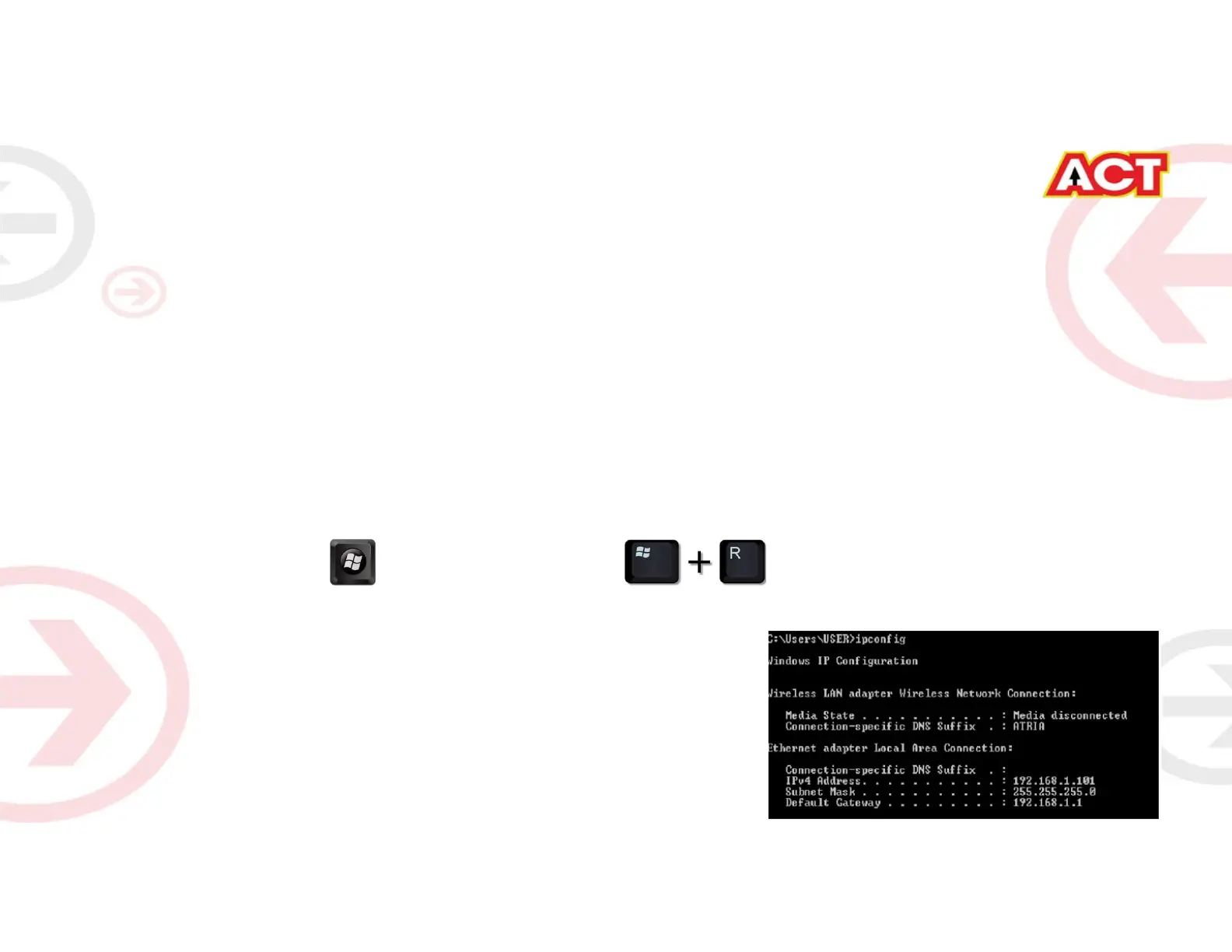 • Type ipconfig on the command prompt(Black screen) . The default gateway of the LAN or Ethernet