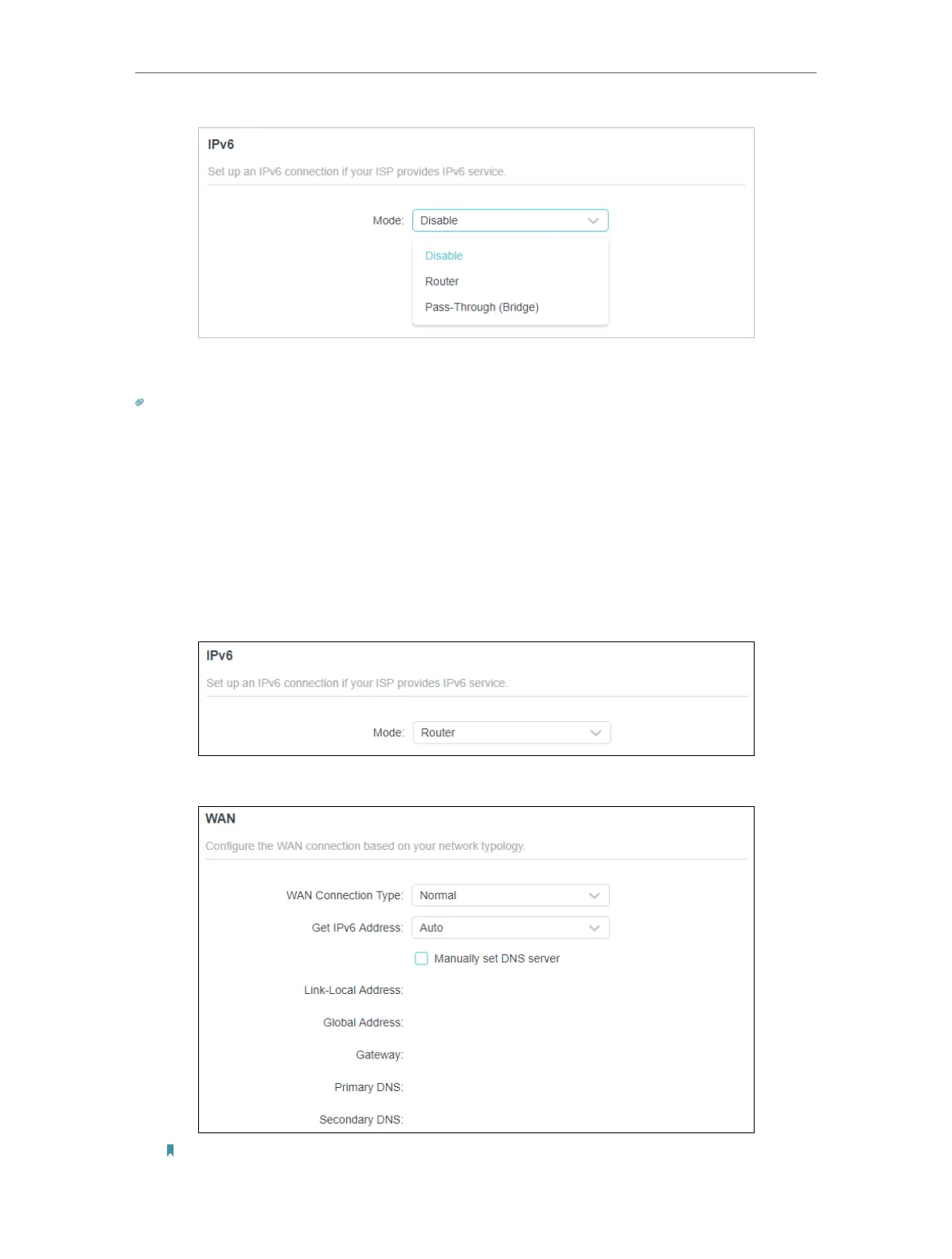 3. Select the mode provided by your ISP to enable IPv6 connection.