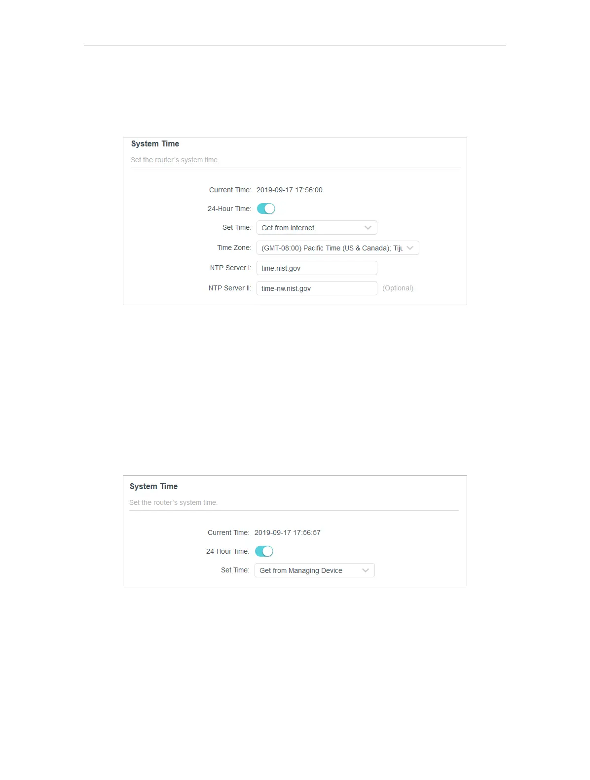1. In the Set Time field, select Get from Managing Device.