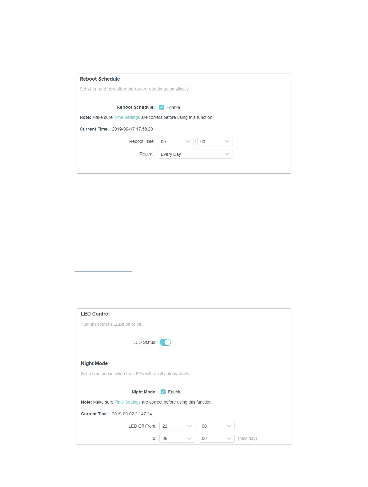 4. Specify the Reboot Time when the router reboots and Repeat to decide how often it