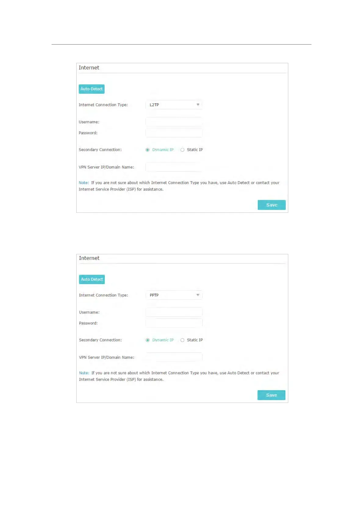 5 ) If you choose PPTP, enter the username and password, and choose the