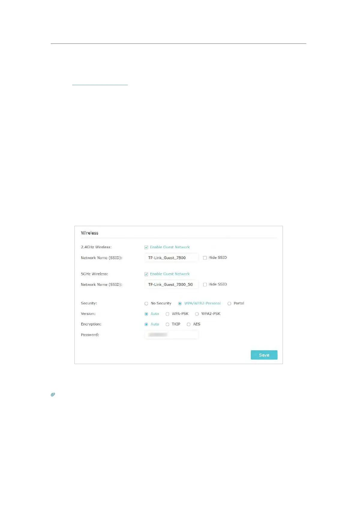 4. Click Save. Now your guests can access your guest network using the SSID and