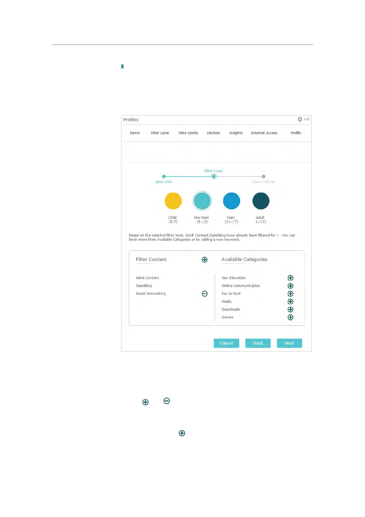 1 ) Select a filter level based on the age of the family member