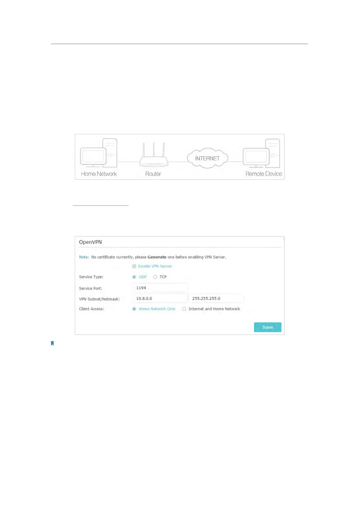 • The first time you configure the OpenVPN Server, you may need to Generate a certificate before you enable the VPN