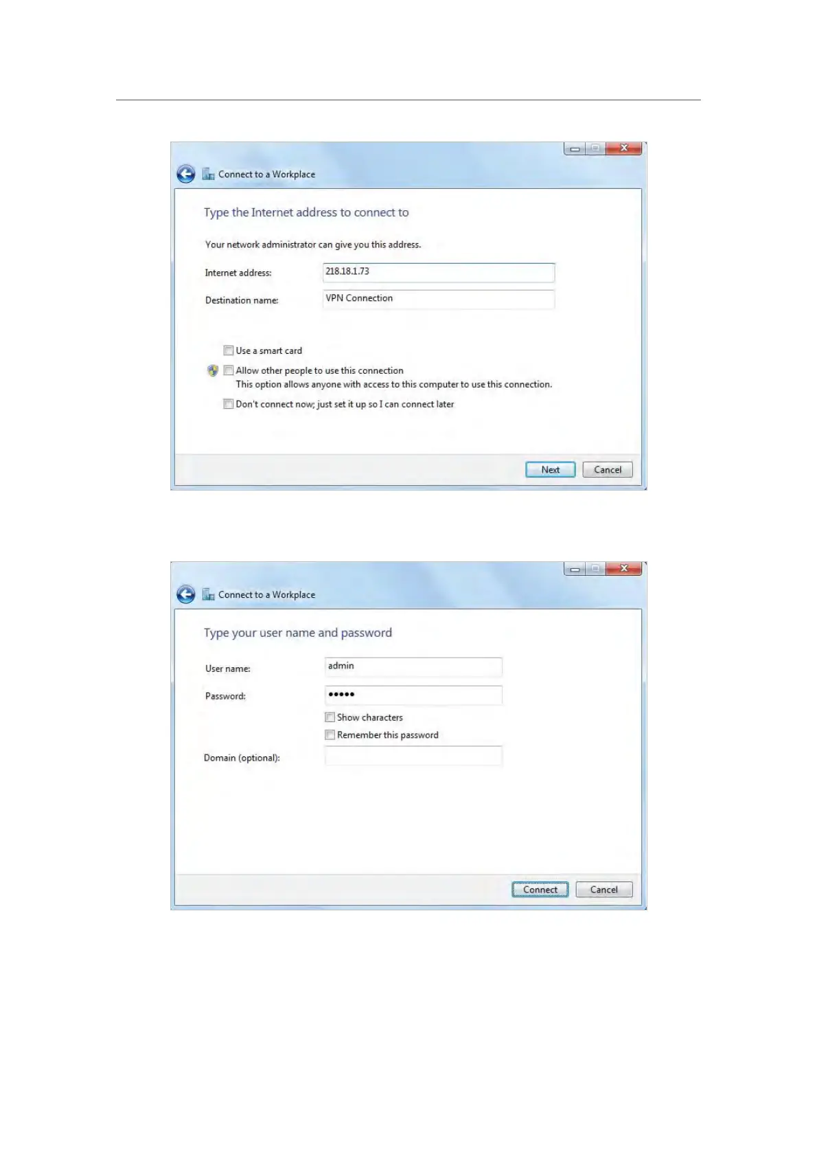 6. Enter the User name and Password you have set for the PPTP VPN server on your